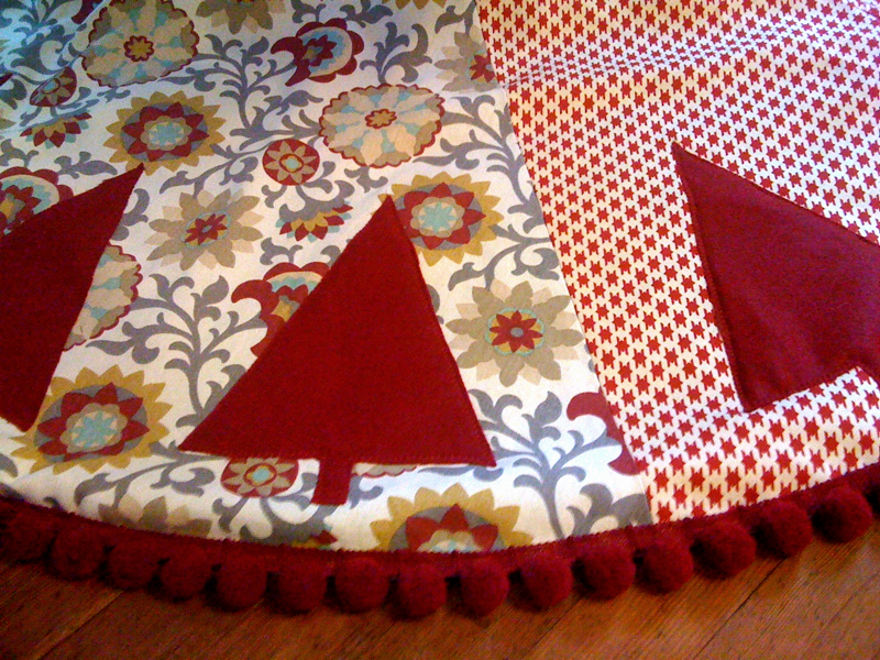 I will probably wear the tree skirt to Cody's office Christmas party.So, you’re probably wondering, “What on earth did she give you? A giant diamond she’d made by crushing carbon with her bare hands?” No, it was better. I opened the box to discover that she’d made me the most gorgeous tree skirt ever in the history of Christmas. If Jesus Christ himself had a Christmas tree and accompanying skirt, I’m sure it was nowhere near as holy and beautiful as this. Honestly, I’d searched Etsy for tree skirts last week and found nothing that even compared to my mom’s work of art. In fact, this tree skirt is probably the most wonderful thing I own. It embodies my ideal style, with a design that’s charmingly simple but not at all stark, and plenty of cheerful but balanced color and splashes of bold, joyful pattern. The luxurious fabric and perfect trim are so incredibly stylish yet timeless, and even incorporate the specific colors or our decor. As anyone who has given or received a truly thoughtful, handmade gift knows, it’s more than a tree skirt. It’s even more than an heirloom. It’s a symbol of something much greater. Love, of course! And Martha-Stewart-esque skills that I’ll probably never have.