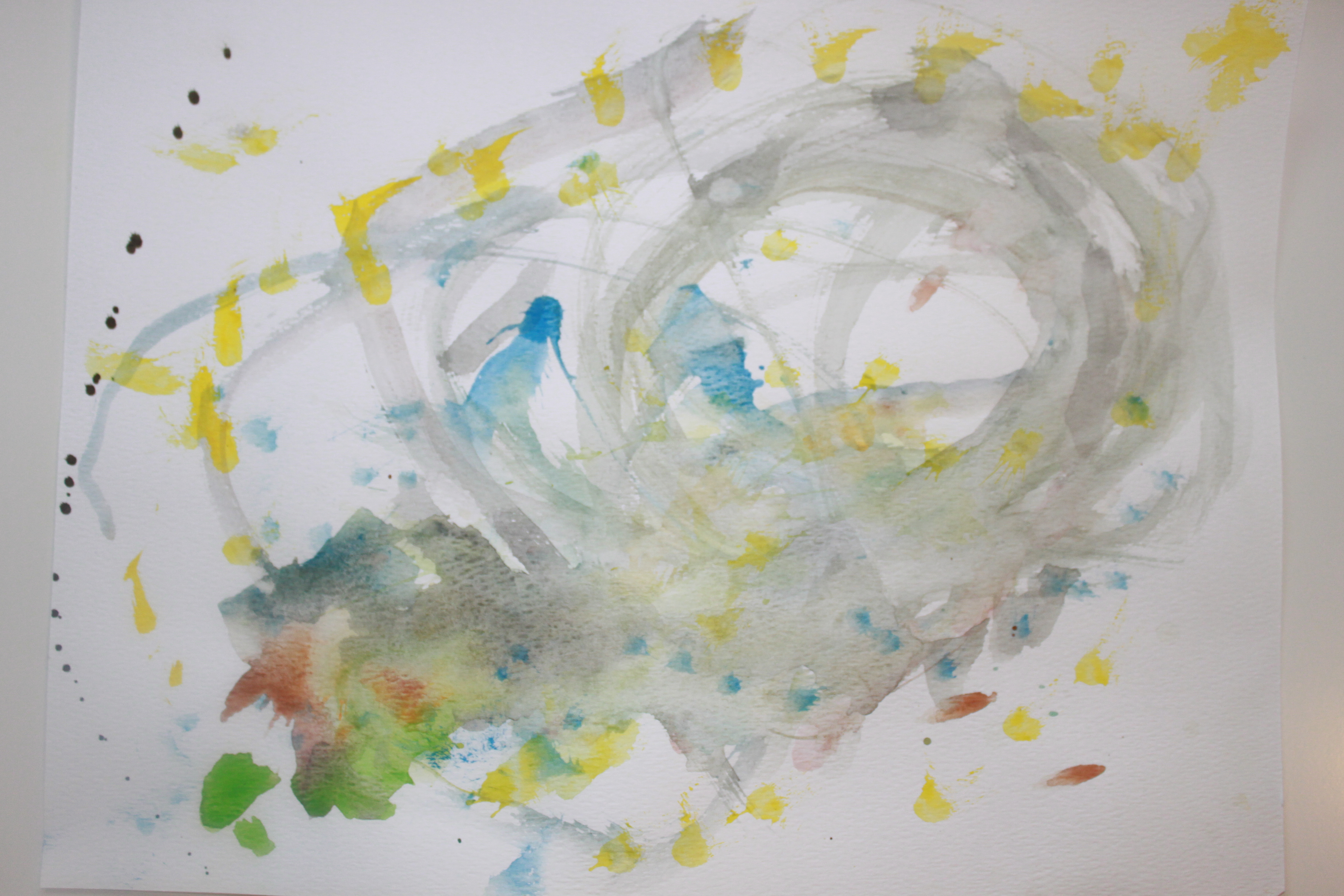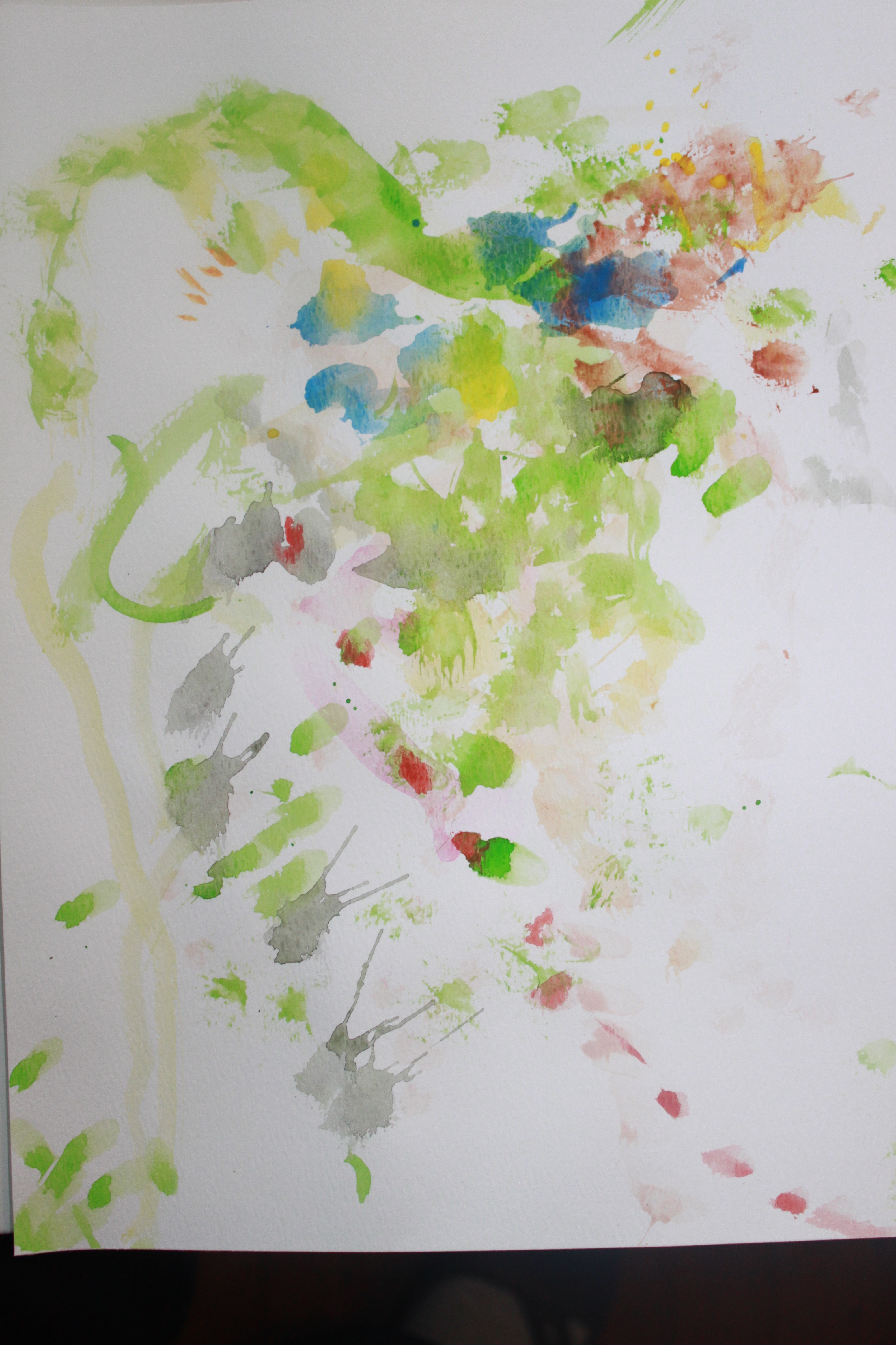 Untitled. Stella's first foray into watercolors, on Easter Sunday. On the surface, it's a tribute to the joys of spring and candy, but underneath, there's a deeply conflicted expression of the promise and peril of modern childhood. Stunning.